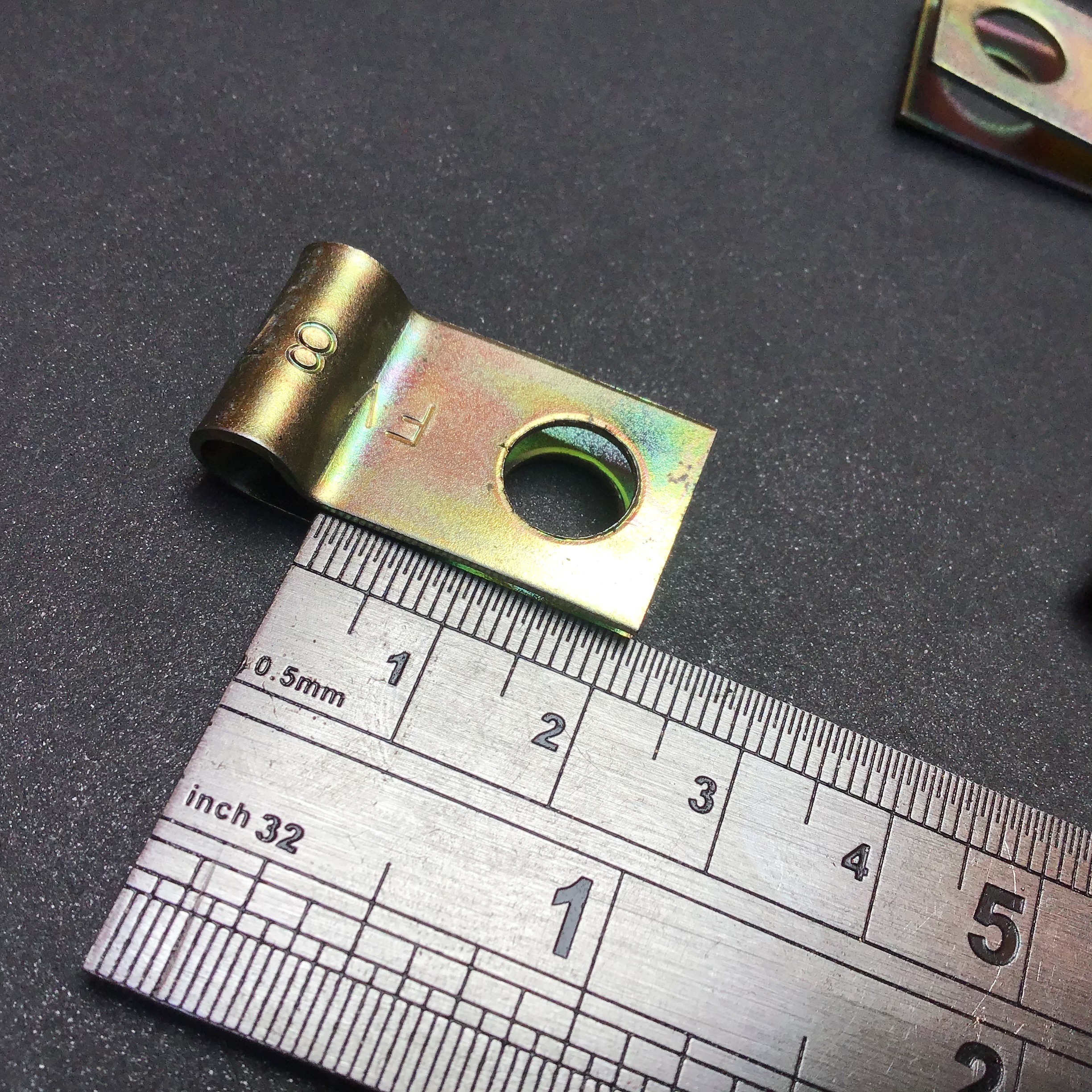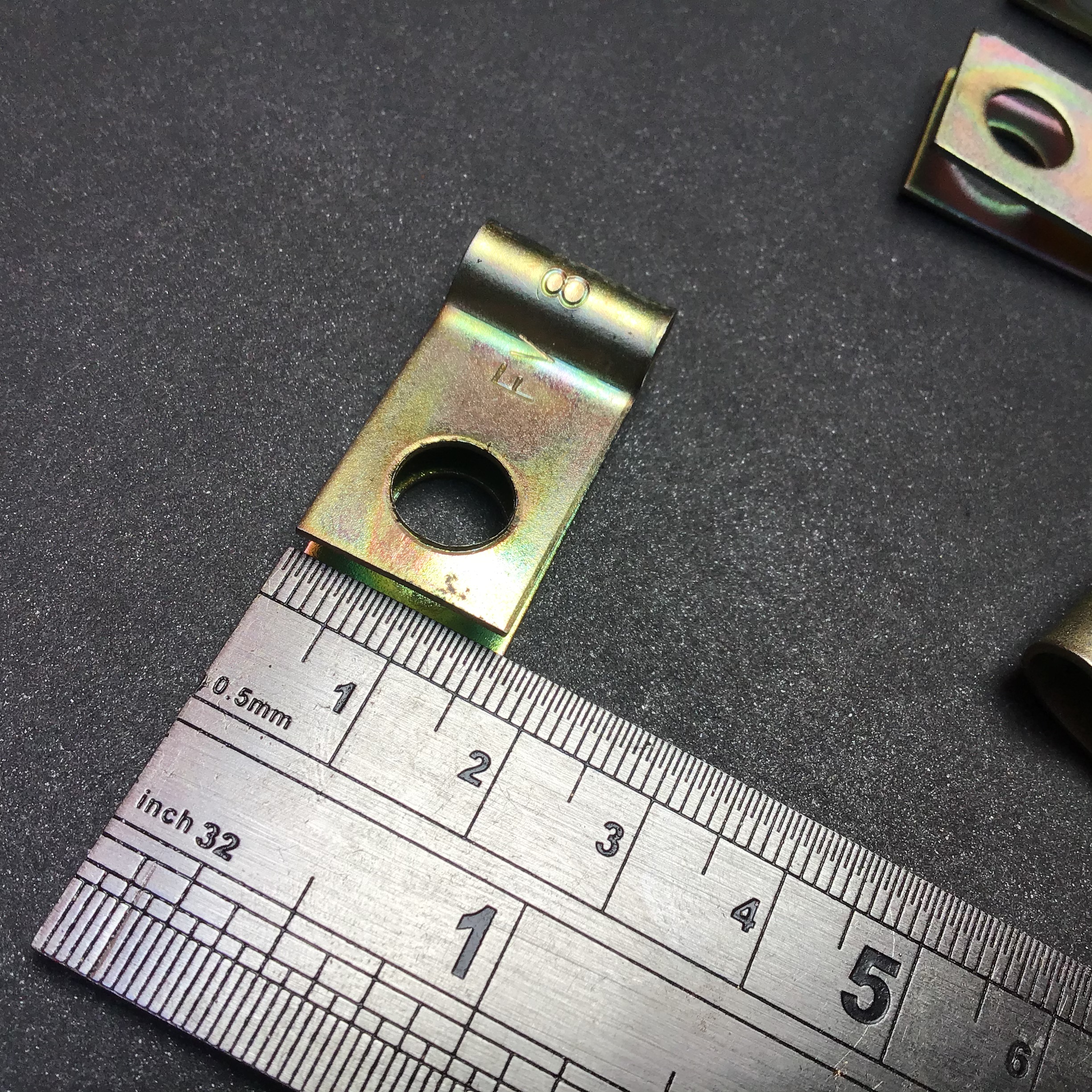 The clips have a 5/16” diameter fixing hole. The total length of the clips is 30mm with a 20mm tab.