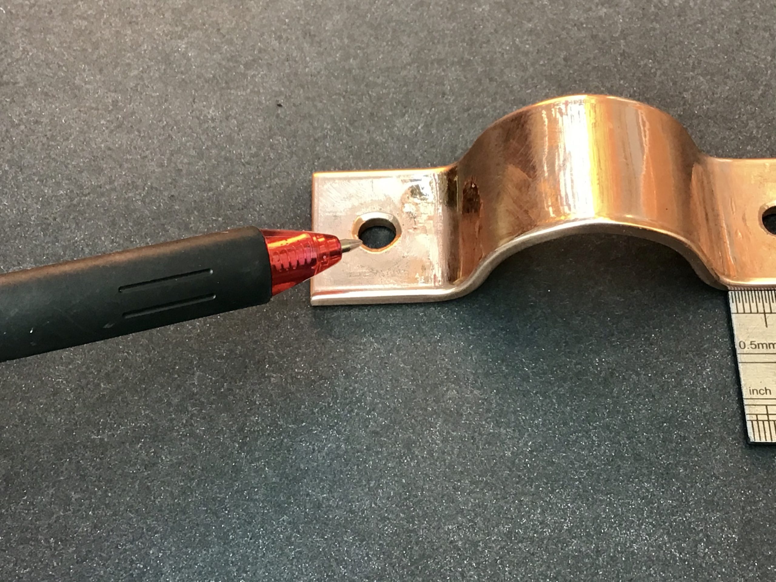 This copper pipe bracket will grab 35mm outside diameter pipe/tube securely.