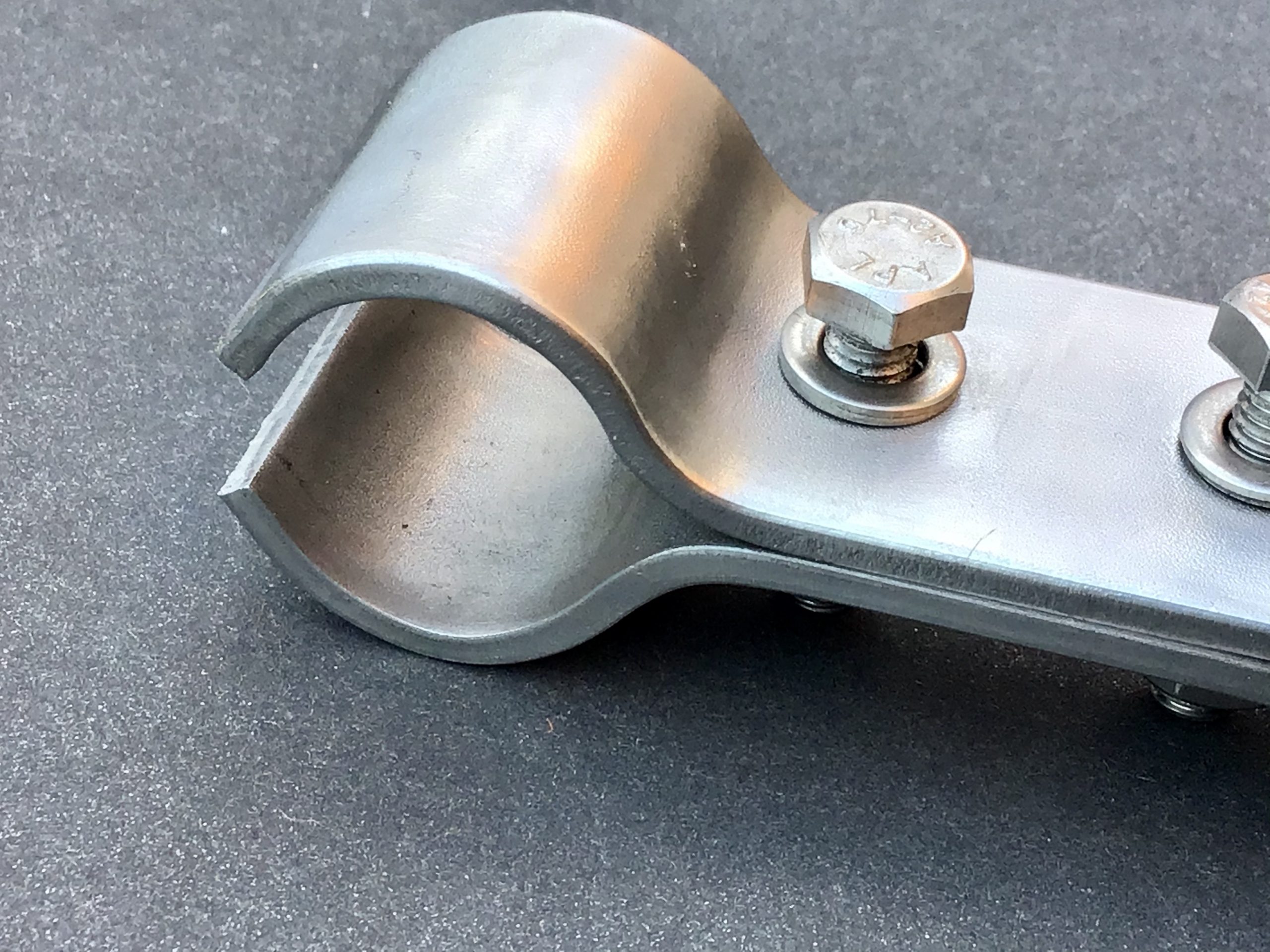 The pipe clamps we manufacture have been cold pressed. This gives the advantage over hot pressed components, as the metal does not lose its strength when cold pressed. These clamps are extremely strong and with the added bonus of being 316L stainless steel (corrosion resistant) makes these pipe clamps the perfect choice for your installation.